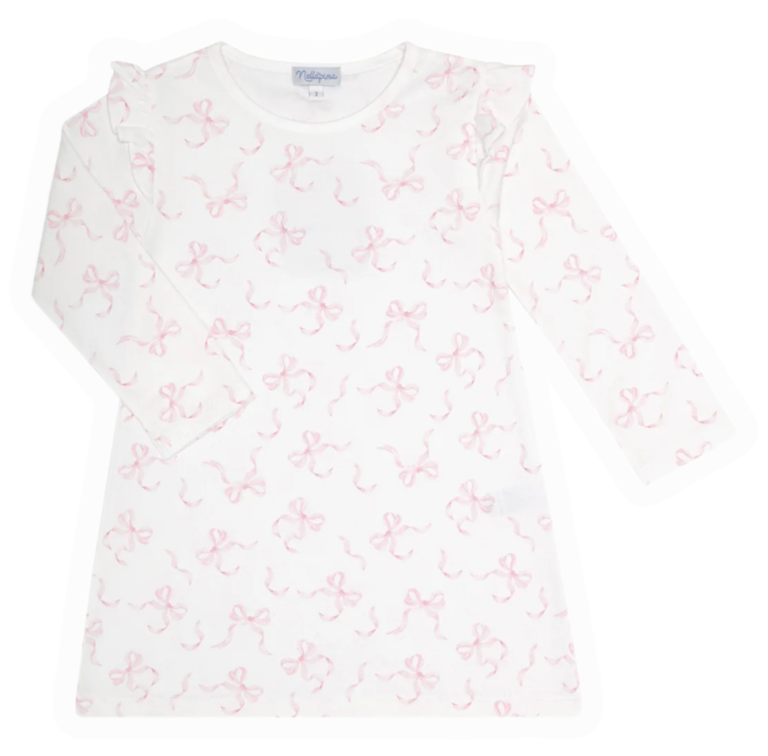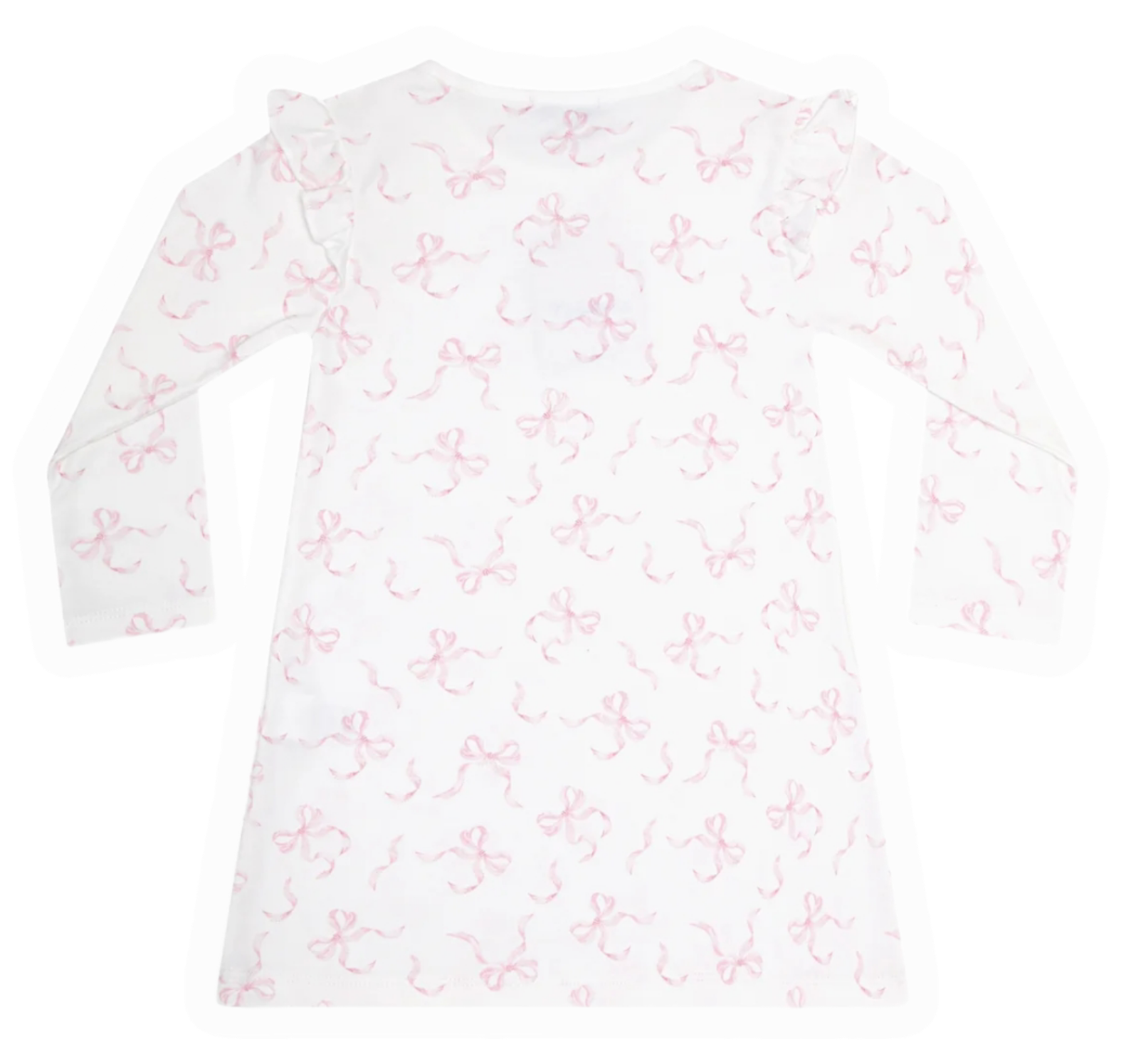 Get ready for cozy days with the Long-Sleeve Charming Bows Playtime Dress! This delightful dress shows off a fresh white backdrop adorned with cute pink bows, adding that hint of fun and "charm" to your little one’s look. Made from soft, breathable Pima cotton, it keeps your child comfy whether they’re running around or shining at special events. With a design that’s just as happy to dress up as it is to keep things casual, this dress is a playful and practical favorite for any fall or winter wardrobe.