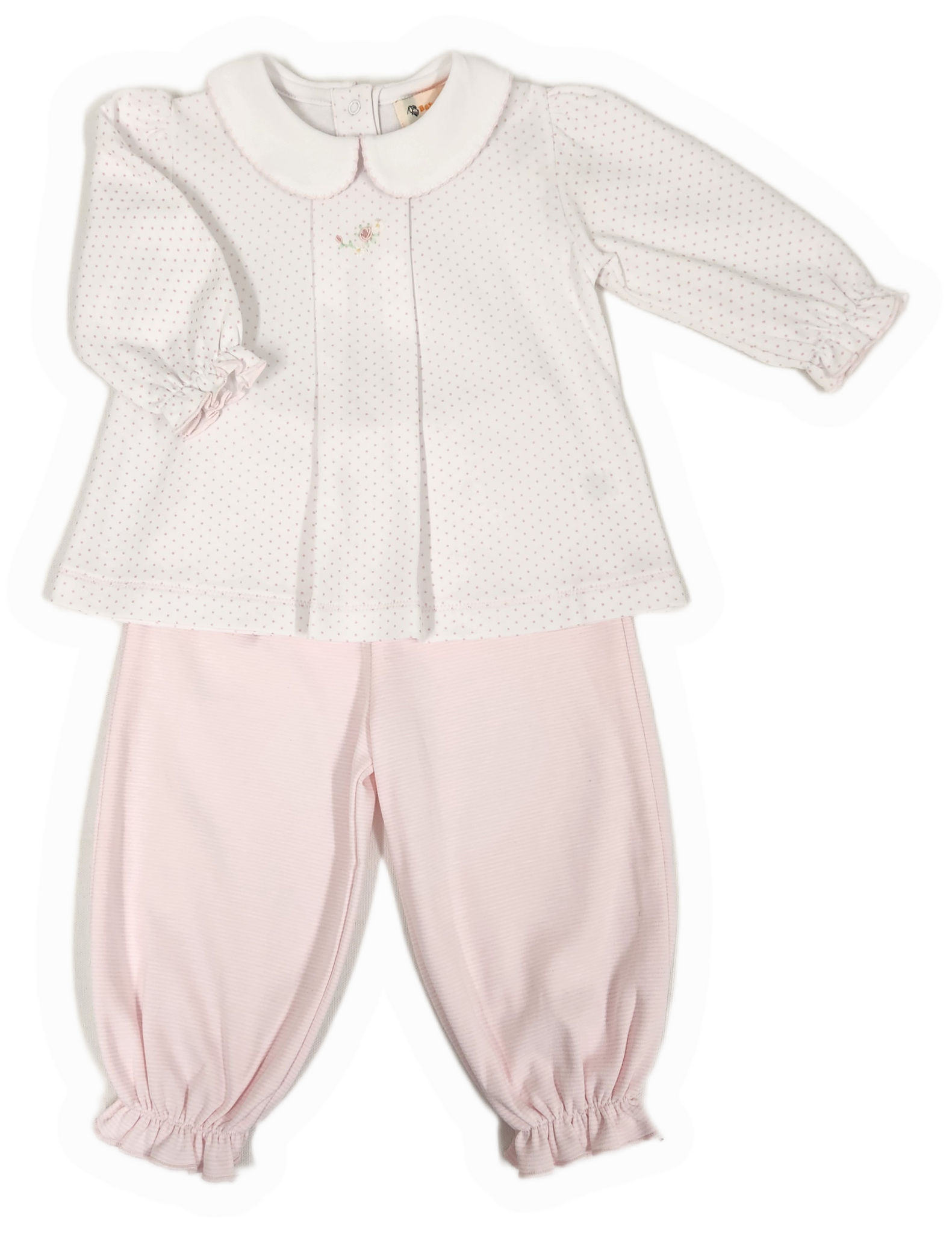 Introducing the perfect set for your little one this fall - the Long-Sleeve Flower Embroidered Collared Shirt with Striped Bubble Pant! Made with the softest pima cotton by Acvisa, this set not only ensures maximum comfort but also allows you to mix and match the versatile bubble pant with any top. Get it now and elevate your little one's style for the entire season!