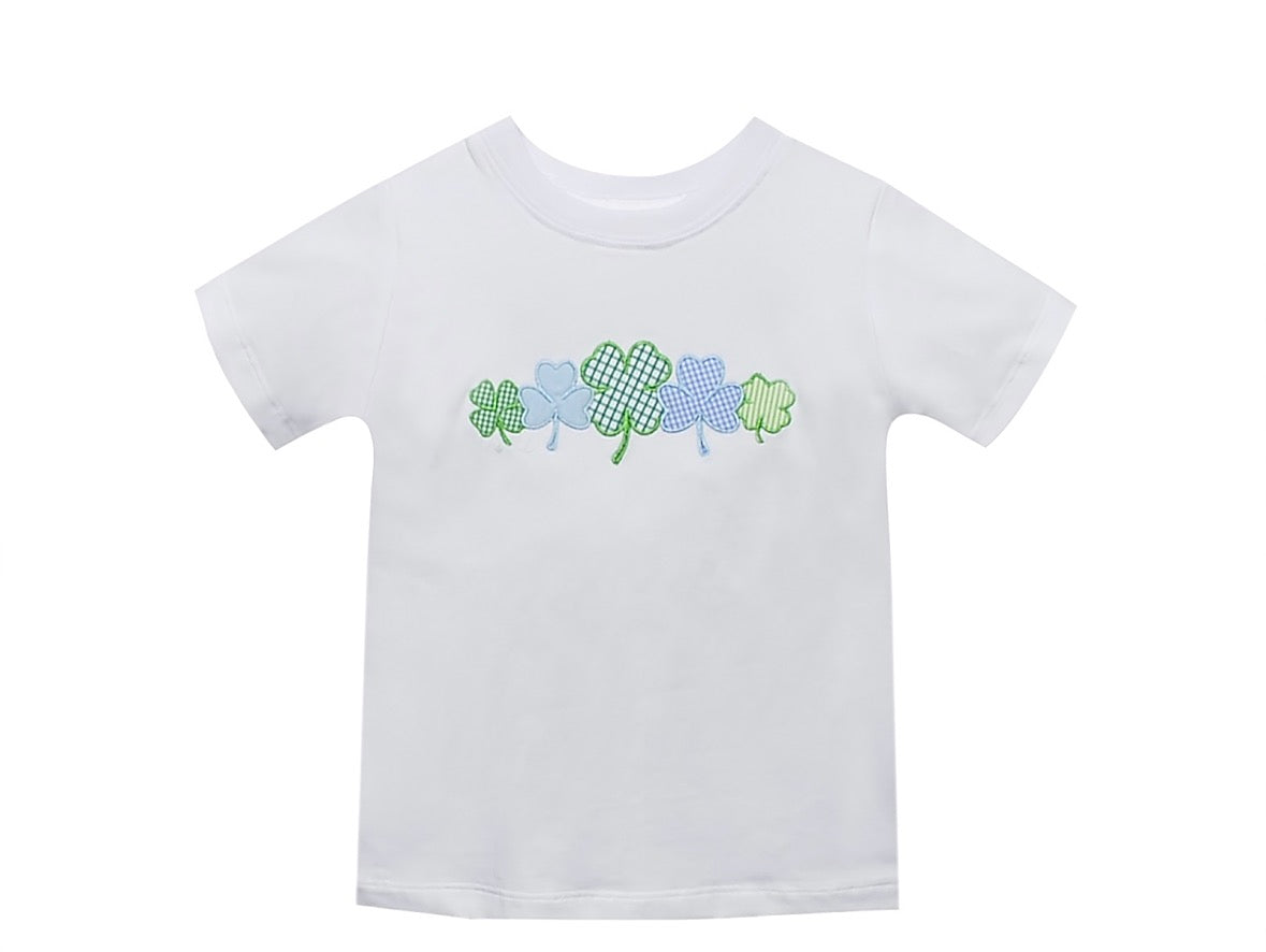 Keep your little one safe from pinches with this charming Houston shirt featuring appliqued clovers. Designed with kindness in mind, the soft fabric and secure stitching protect delicate skin while celebrating lucky symbols. Clovers and Kindness style.
