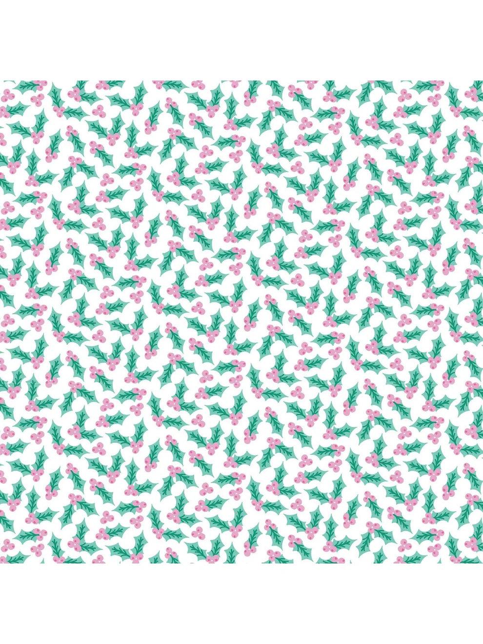 Green Holly Holiday print with yoke collar and pink velvet ribbon trim