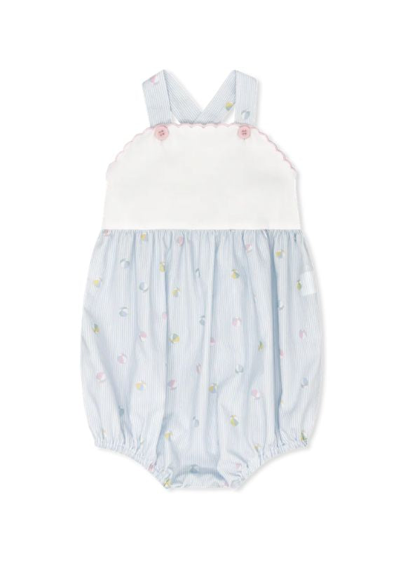 Featuring a crisp white top trimmed with delicate pink embroidery and matching pink buttons, this bubble is finished with a playful Beach Bounce print on the bottom. Designed for comfort and cuteness, it's a summertime staple your little one will love.