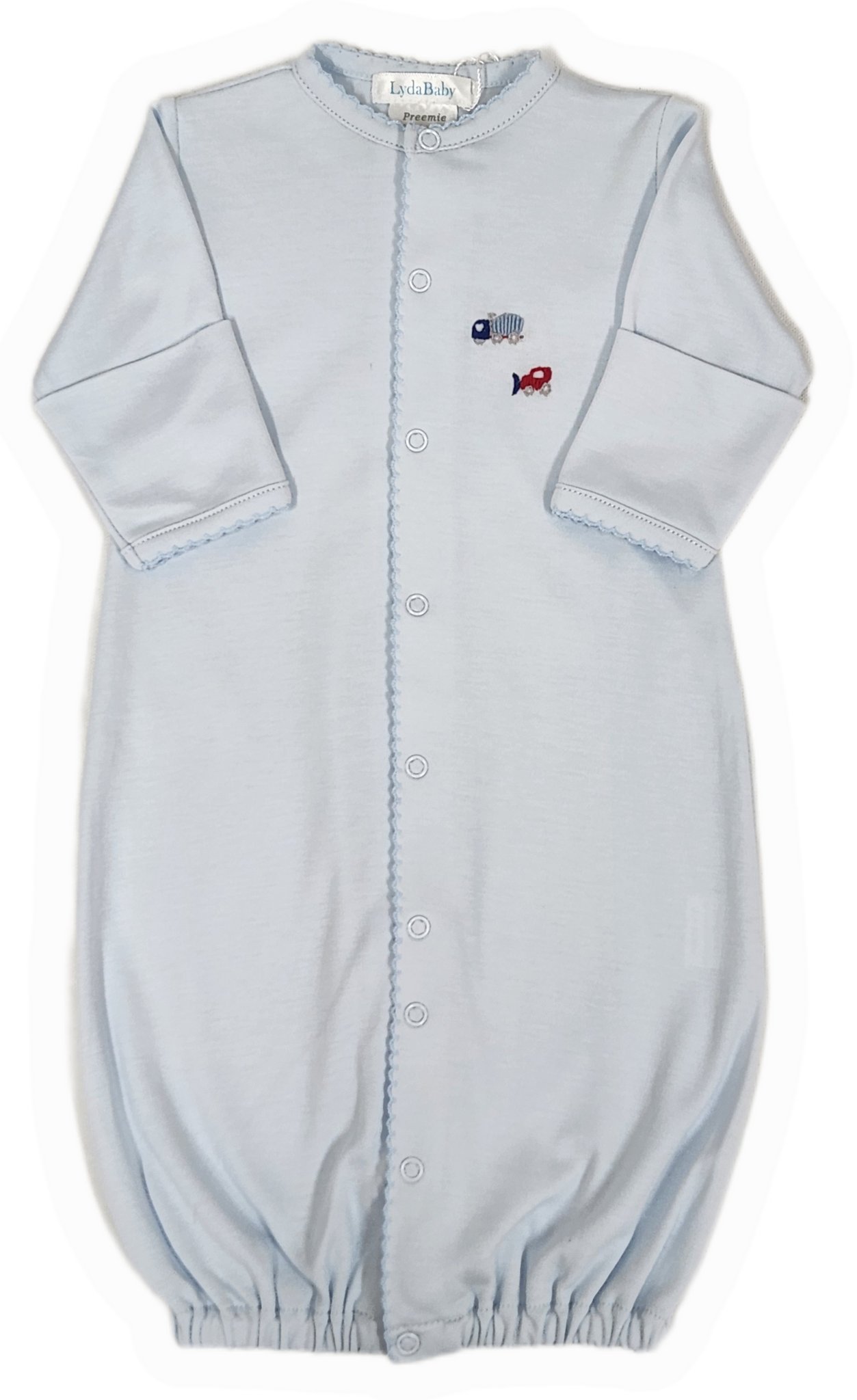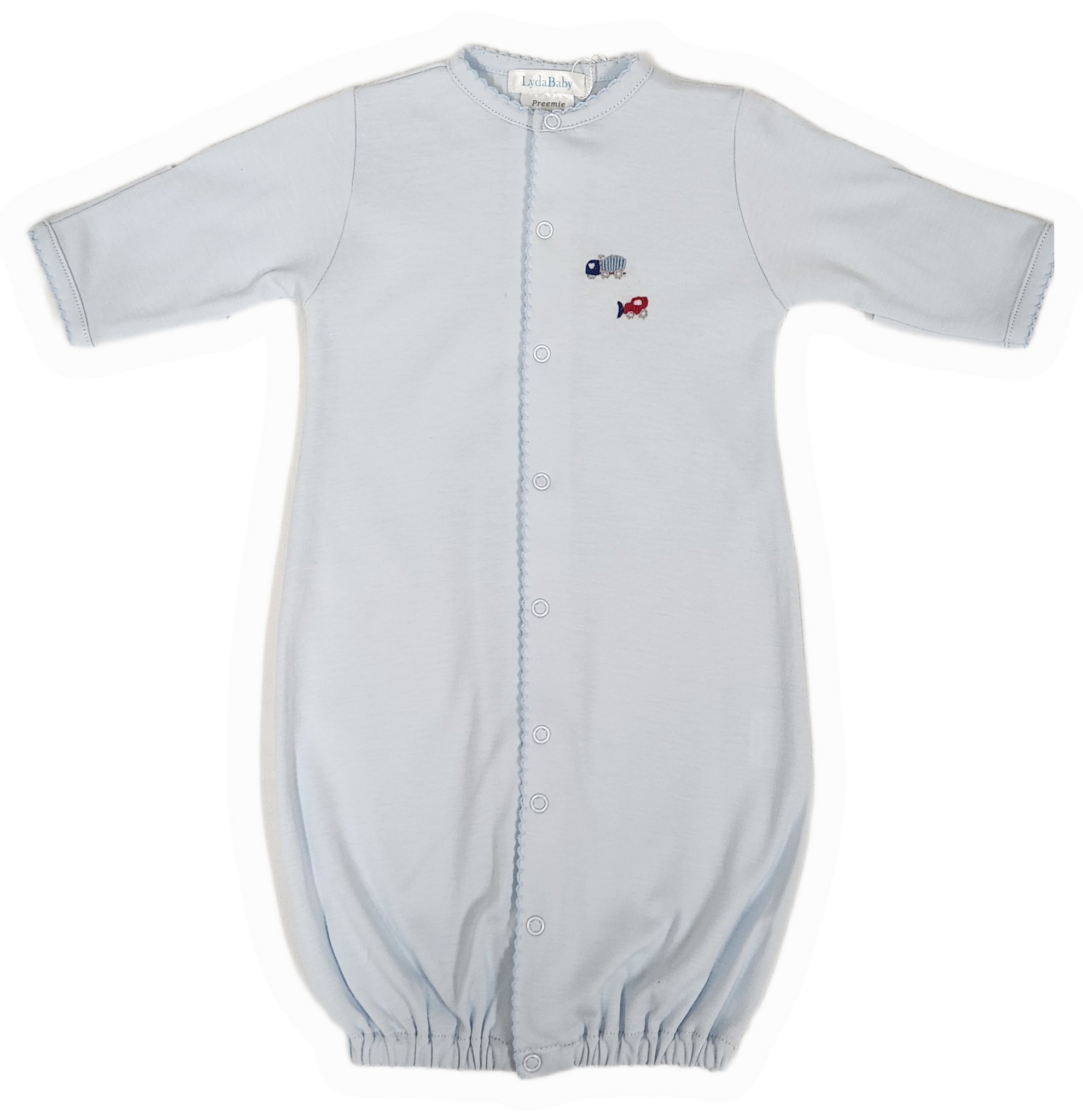 Classic and full of handmade charm — this embroidered converter gown is a newborn essential. Crafted in ultra-soft Peruvian Pima cotton, it features delicate hand embroidery by skilled Peruvian artisans and a convertible design that switches from gown to romper with easy snaps.