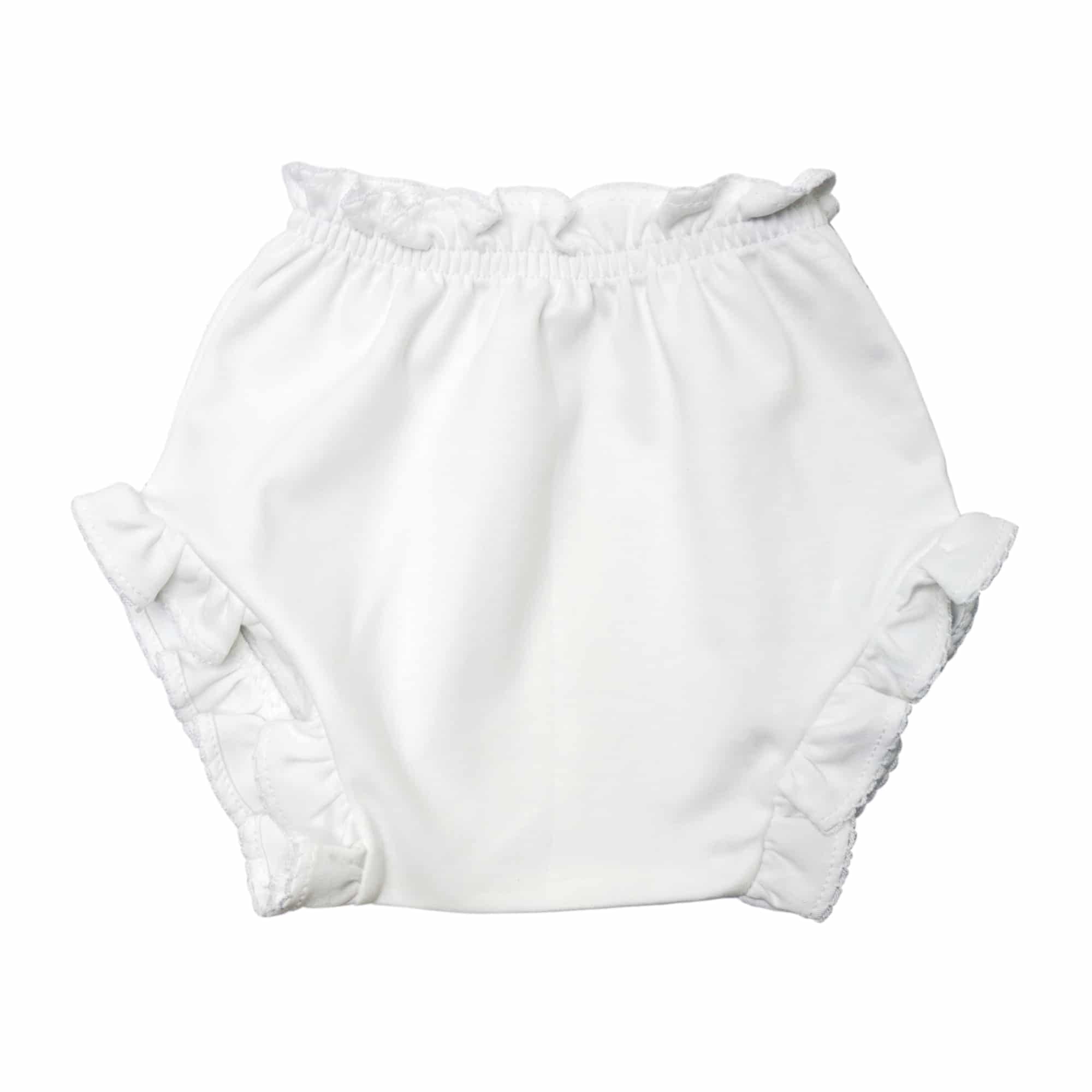 Your baby doesn’t have to feel warm and uncomfortable when wearing bloomers with these Pima Cotton Ruffle Edge Bloomers. Crafted with breathable and lightweight material, these bloomers will keep your baby feeling fresh and cool even in the humidity and heat of summer sunshine. Cute monogrammed, too.