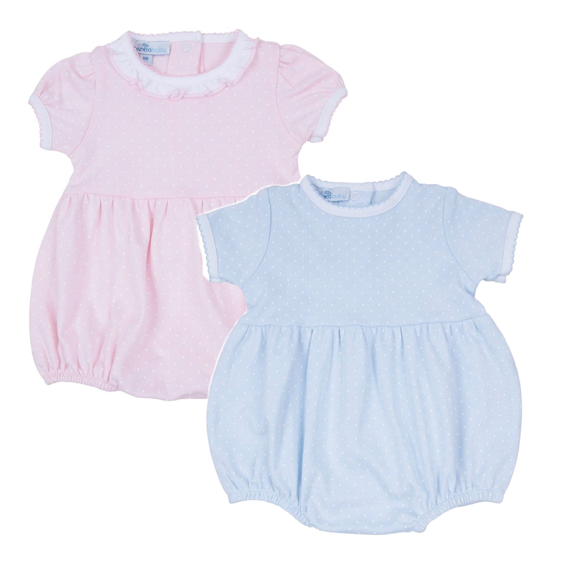 Adorable dot print bubble romper crafted from soft pima cotton—the perfect pick for spring adventures and endless summer days. Available in styles for both boys and girls, this charming piece keeps little ones comfy and cute from sunrise to sunset. The breathable fabric and playful design make it an instant favorite for warm-weather play, picnics, and everything in between.