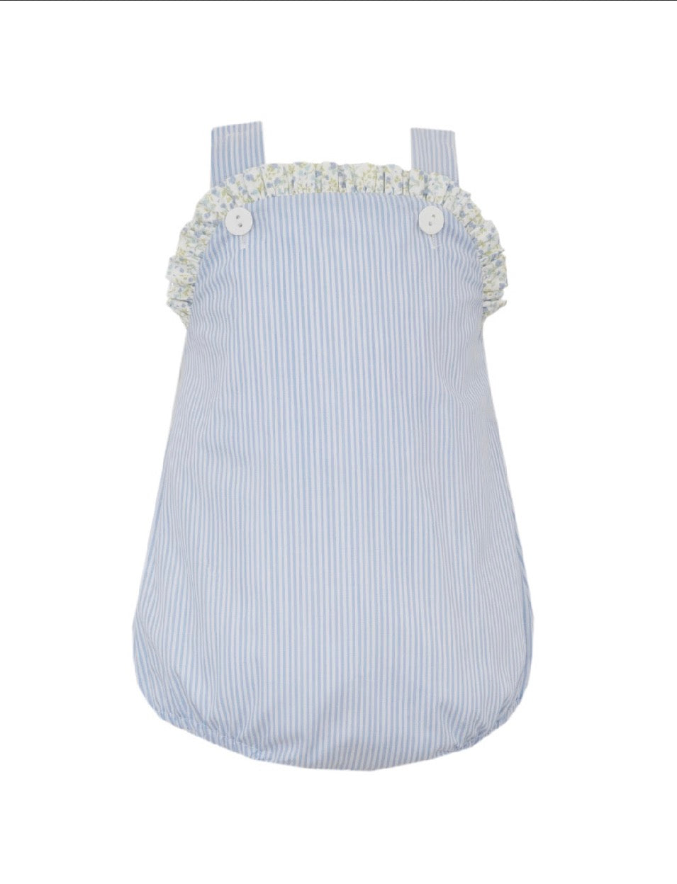 Dress your baby girl in timeless elegance with this Blue Floral Sleeveless Bubble from Petit Bebe. The charming blue floral print captures that perfect balance of playful and sophisticated, while the sleeveless cut ensures she stays comfortable during warmer months.