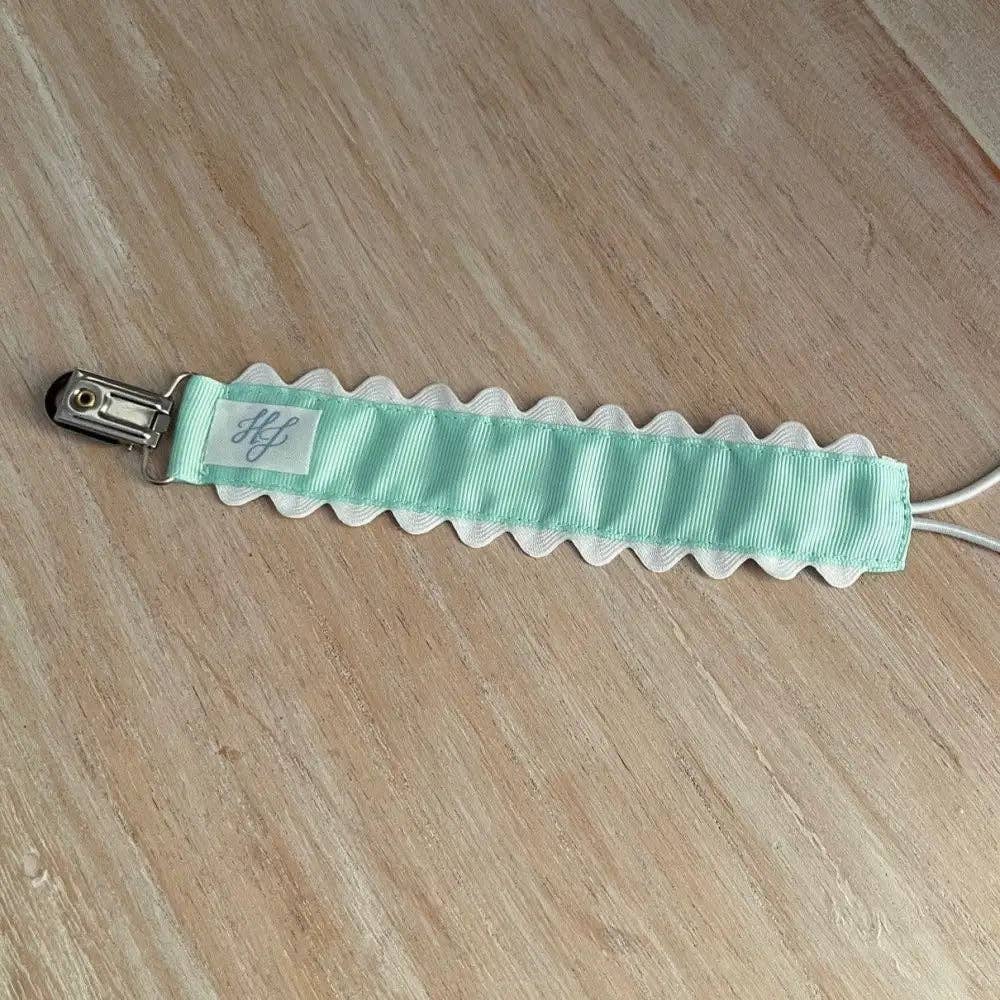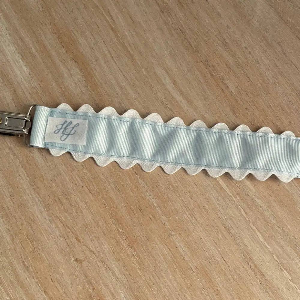Proudly present the Hampton James Paci Clip - the ultimate solution for keeping your little one's pacifier in place! Featuring a precious white scalloped trim, this clip is not only stylish but also incredibly durable. Say goodbye to constantly replacing your paci clip - the Hampton James Paci Clip is built to last!